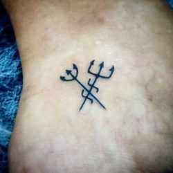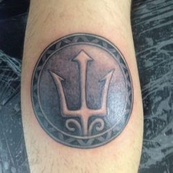 Normalmente essa tatuagem simboliza a proteção que tem de determinado Exu devido à presença deste elemento (do tridente) que controla os 3 elementos principais.